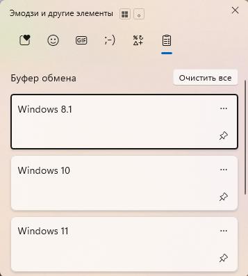 А ещё! Расширенный буфер обмена в Windows 11 поддерживает вставку: Эмодзи, GIF, Каомодзи и Символы.
